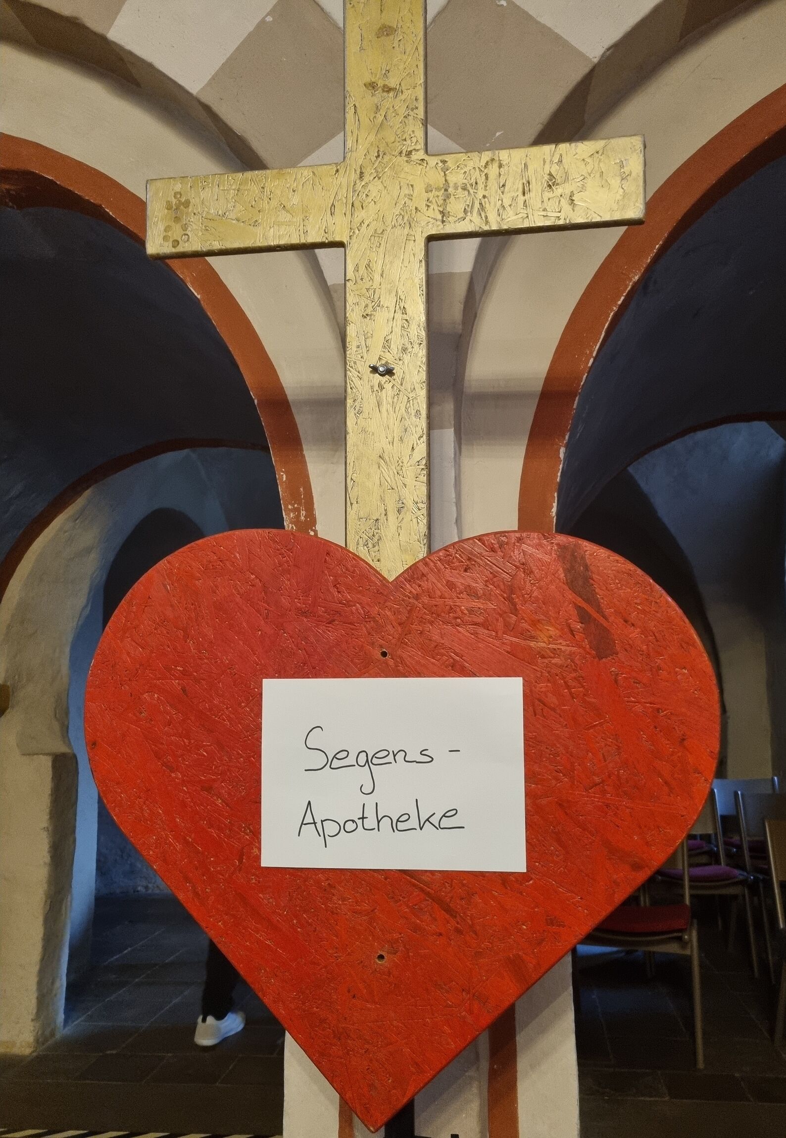 Ein Highlight des Gottesdienstes war unsere Segensapotheke, die im hinteren Bereich der Kirche in hellblaues Licht getaucht war, dort konnten sich die Gottesdienstbesucher:innen einen persönlichen Segen zusprechen lassen.